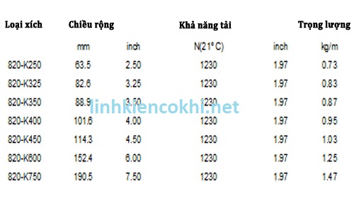 Xích tải nhựa có một hệ số ma sát rất thấp và chịu mài mòn tốt, tải trọng làm việc cao.